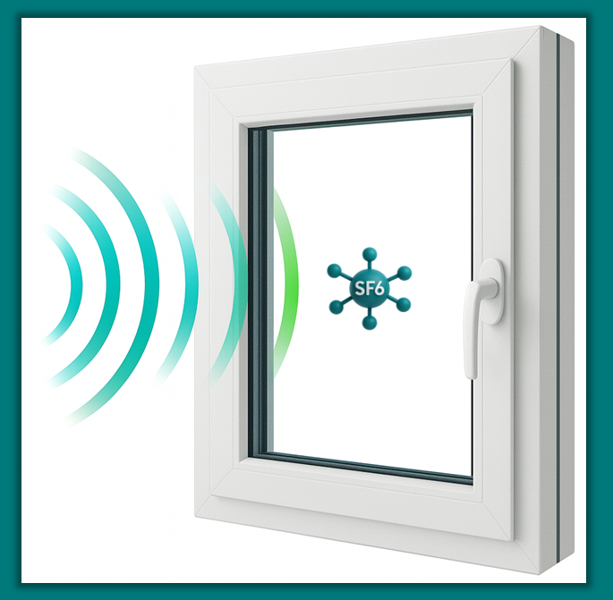 Zwischen den späten 1970er-Jahren und 2006 wurde SF₆ in großen Mengen in der Bauindustrie als Isoliergas in Schallschutzfenstern verbaut. Der Vorteil: Durch seine hohe Dichte wirkt SF₆ schalldämpfend und führt so zu einer deutlichen Absenkung des Schallpegels in Innenräumen – insbesondere in Gebäuden an Hauptstraßen, Flughäfen oder Bahntrassen.